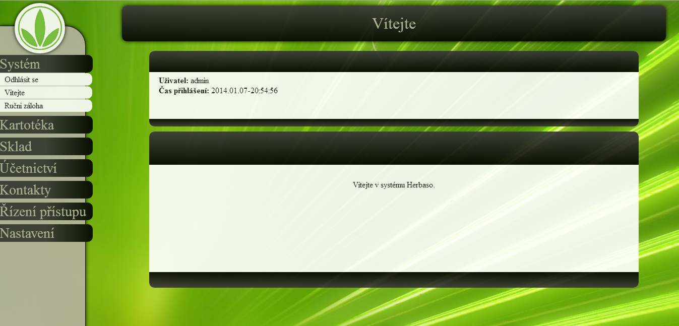 Obr.1 - Herbaso - Webová aplikace pro správu kontaktů a jednoduchou evidenci příjmů a výdajů. Jiří Sobota - Výživové poradenství