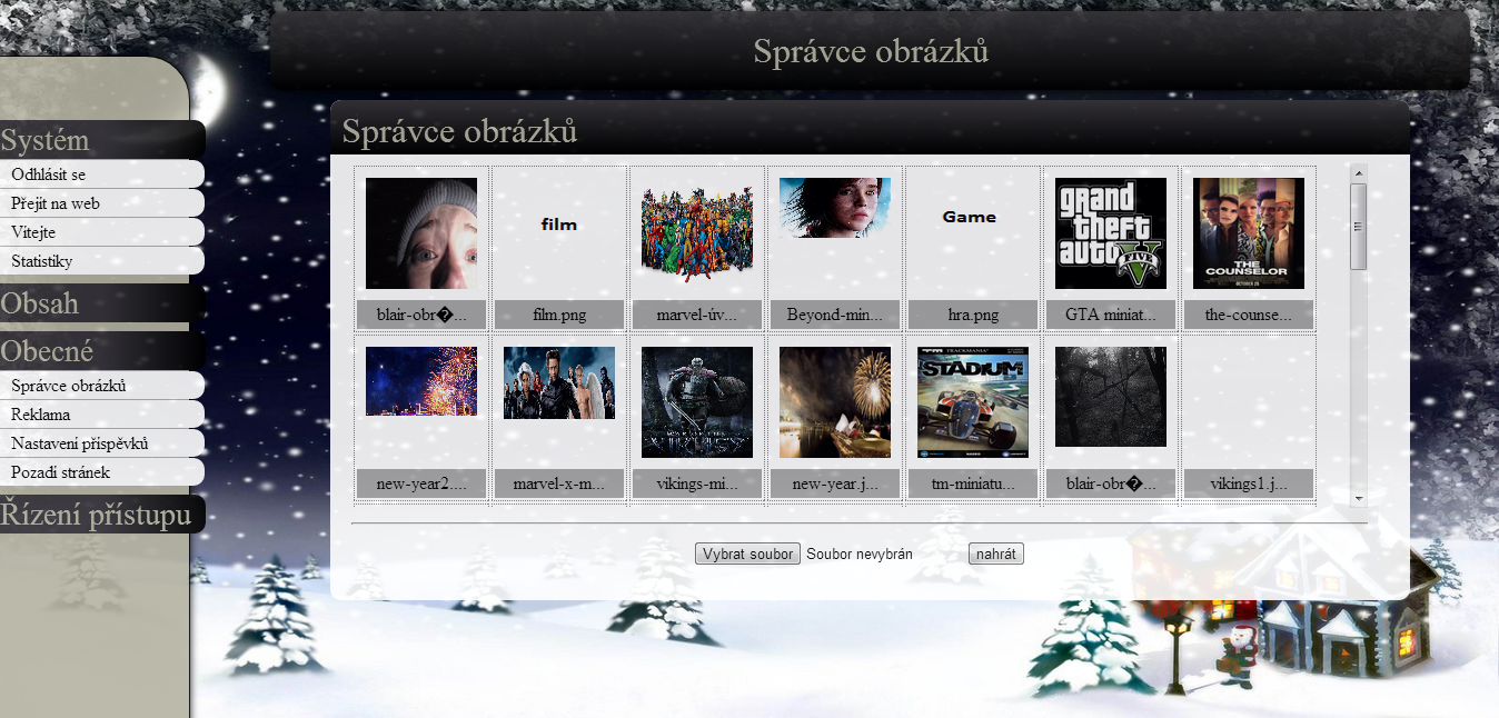 V základním vybavení nesmí samozřejmě chybět "Správce obrázků" (viz. obr. 3) a jako volitelné součásti pak Správce reklamy a nastavení pozadí stránek.