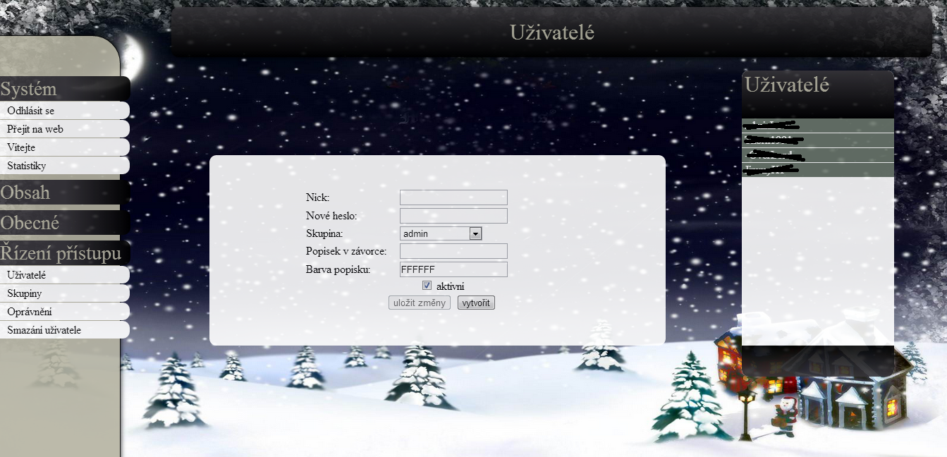 Další z modulů, který je součástí základního vybavení je modul "Řízení přístupu" (viz. obr. 2). Zde se vytváří uživatelské účty a jejich oprávnění přístupu k sekcím Administrace.